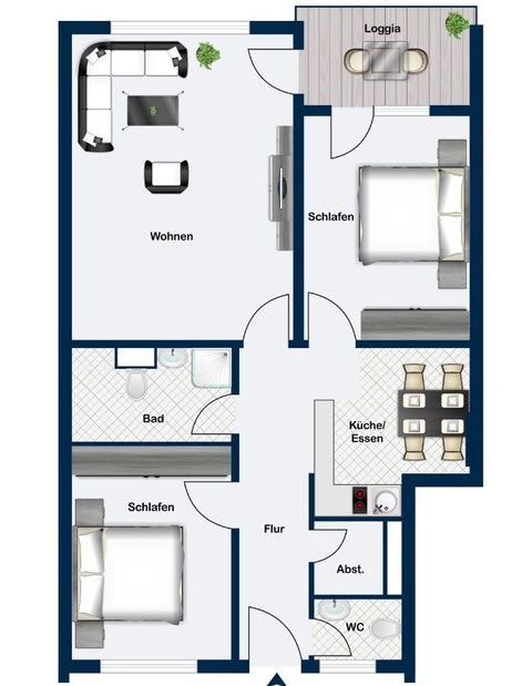 Auf rund 68 m² bietet die Wohnung ausreichend Platz für bis zu 4 Personen und ein Kleinkind.