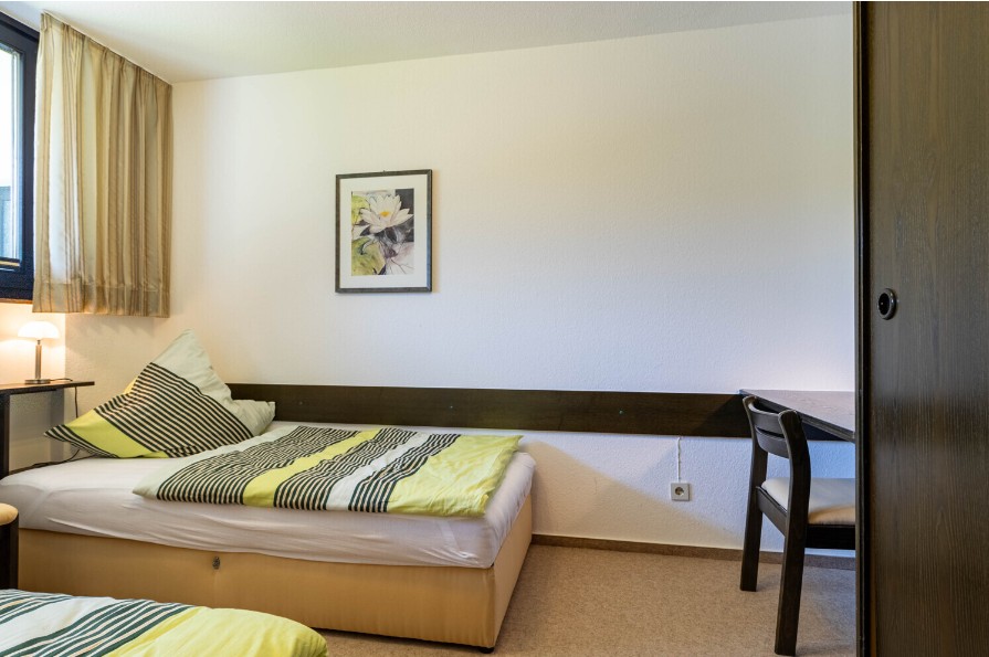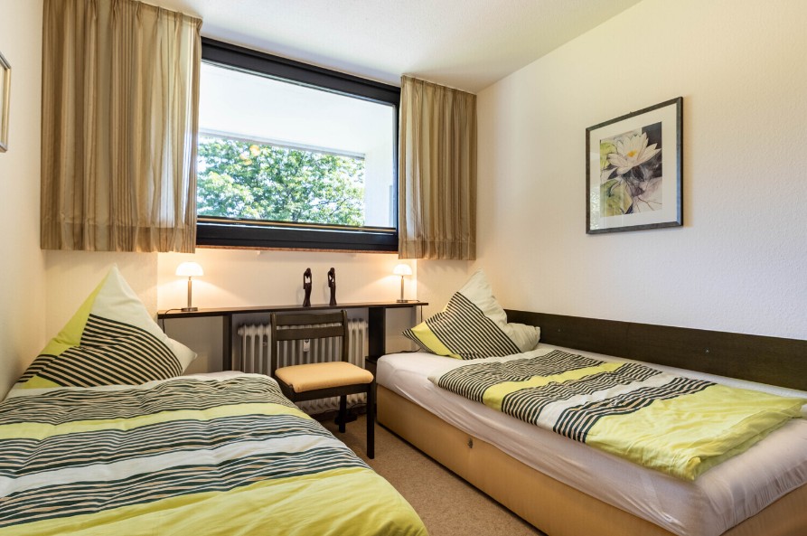 Im Kinderzimmer mit zwei Einzelbetten gibt es auch einen Schreibtisch zum Malen, Spielen oder Arbeiten.